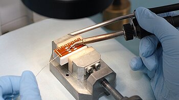 PI Ceramic also performs the integration of piezo elements into the customer product. This includes both the electrical contacting of the elements according to customer requirements and the mounting of components provided by the customer, as well as the gluing or the casting of the piezo ceramics. For the customer, this means an accelerated manufacturing process and shorter lead times.