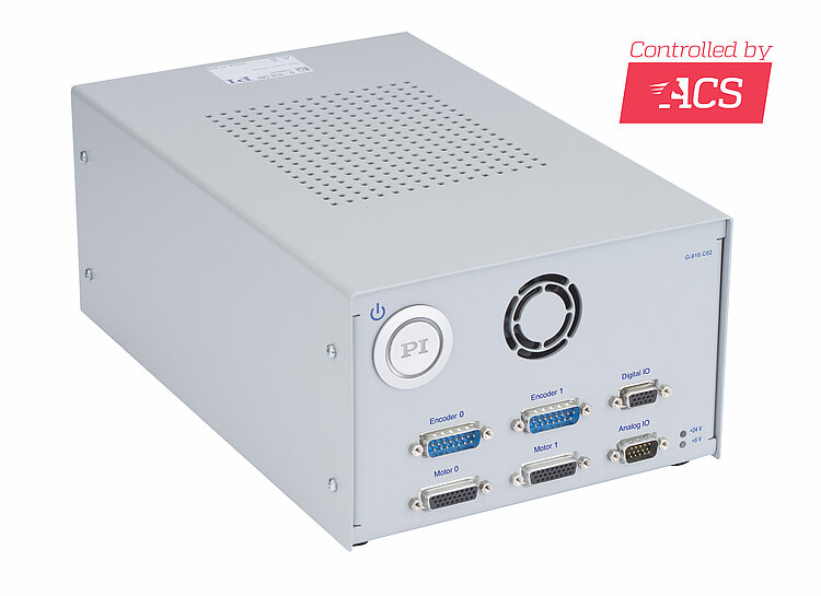 Function | ACS SPiiPlusEC controller with the ACS UDMnt driver module, with connectors for positioners from PI |