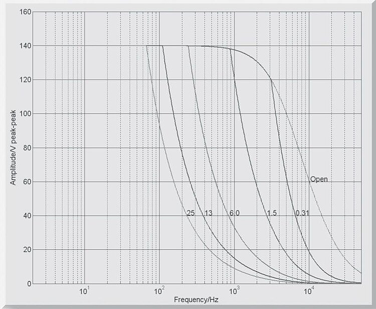The amplifier controls the amount of charge being transmitted to the piezo actuator. The piezo displacement hysteresis is therefore reduced to 2% of the travel range compared to 10 to 15% in voltage-controlled operation. This allows linear open-loop operation with fast response times and very high resolution at maximum bandwidth. The amplifier switches internally to voltage control when holding a position.