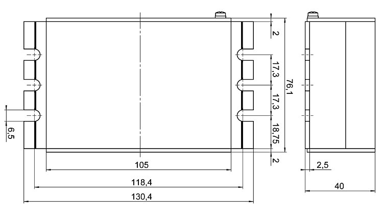 Low-noise power amplifier. Gain value 10. Output voltage range -30 to 130 V. Short-circuit proof, full overcurrent and overtemperature protection.