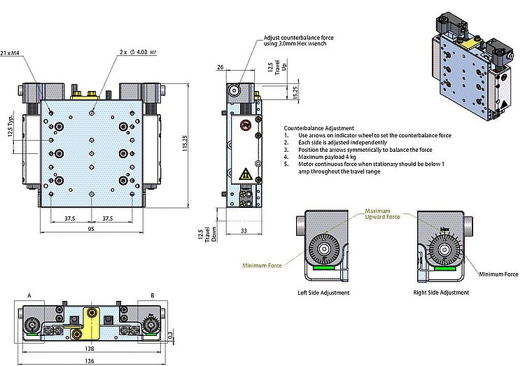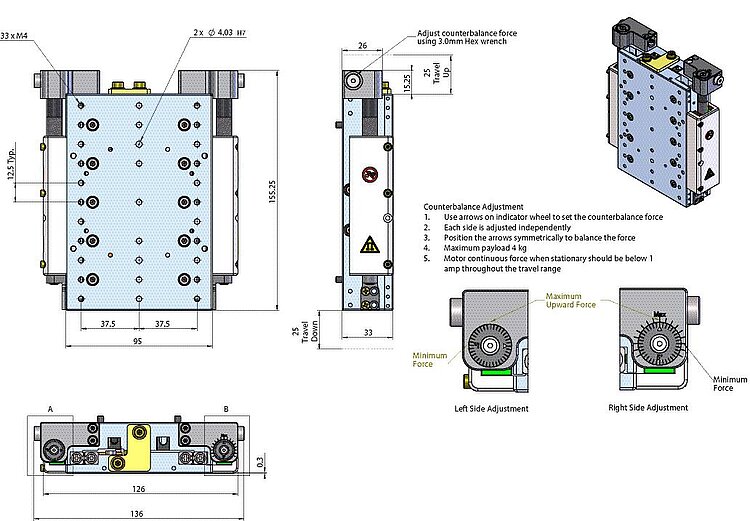 V-571.Z vertical translation stages are designed for accuracy, precision, long life, ease of use. Due to the user-adjustable magnetic counterbalance they can be operated in vertical orientation ensuring minimal current on the linear motor and enhanced dynamic performance.