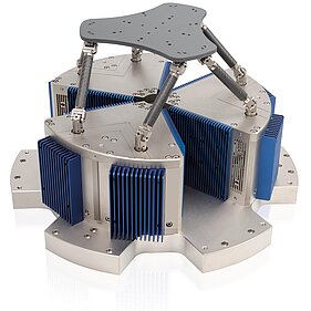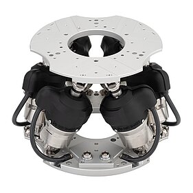 A hexapod is a parallel-kinematic motion platform, that moves, positions, and aligns loads in six degrees of freedom: three translational axes (X, Y, Z) and three rotational axes (ΘX, ΘY, ΘZ). The typical structure of a hexapod, also known as Stewart platform, consists of six length-adjustable actuators connected via joints to the base plate as well as a motion platform that carries the load. Thanks to their parallel-kinematic design, hexapods can execute complex multi-axis motion profiles with high repeatability, dynamics, and stability. At the same time, they are very compact.