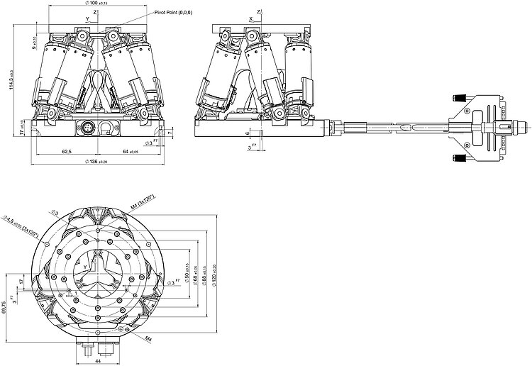 Miniature hexapod; BLDC motor; 2.5 kg payload; 20 mm/s maximum velocity; 0.5 m cable length. Connecting cables are not included in the scope of delivery and must be ordered separately.
