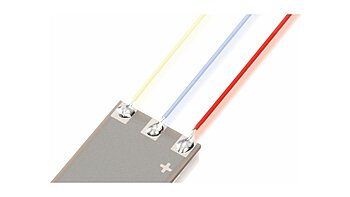 Standard contacts for piezo actuators are 100 mm stranded wires or soldering points. For each piezo element, different wires acc. to the AWG standard are used. Please observe the soldering instructions for each product.