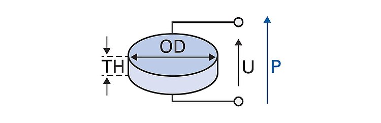Piezoelectric disc, outside diameter (OD) = 10 mm × thickness (TH) = 0.5 mm, piezo material PIC181, electrode Ag screen printed