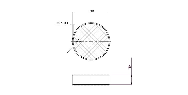 Piezoelectric disc, outside diameter (OD) = 6.5 mm × thickness (TH) = 0.25 mm, piezo material PIC255, electrode Ag screen printed
