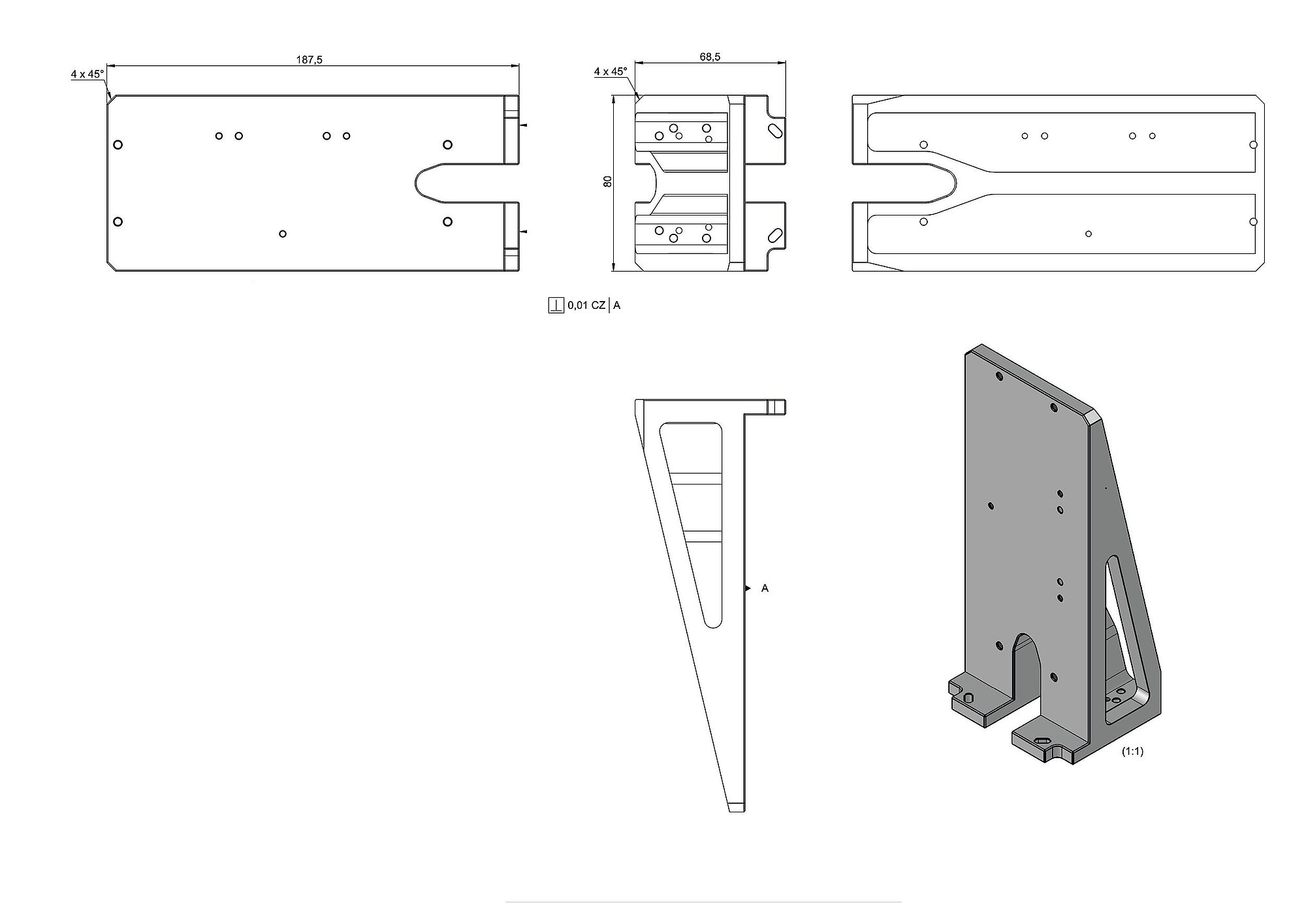 Mounting bracket for Z mounting of the N-332.24U(Y) onto a N-332 linear stage; vacuum-compatible to 10-9 hPa; nickel-plated aluminum; including mounting kit